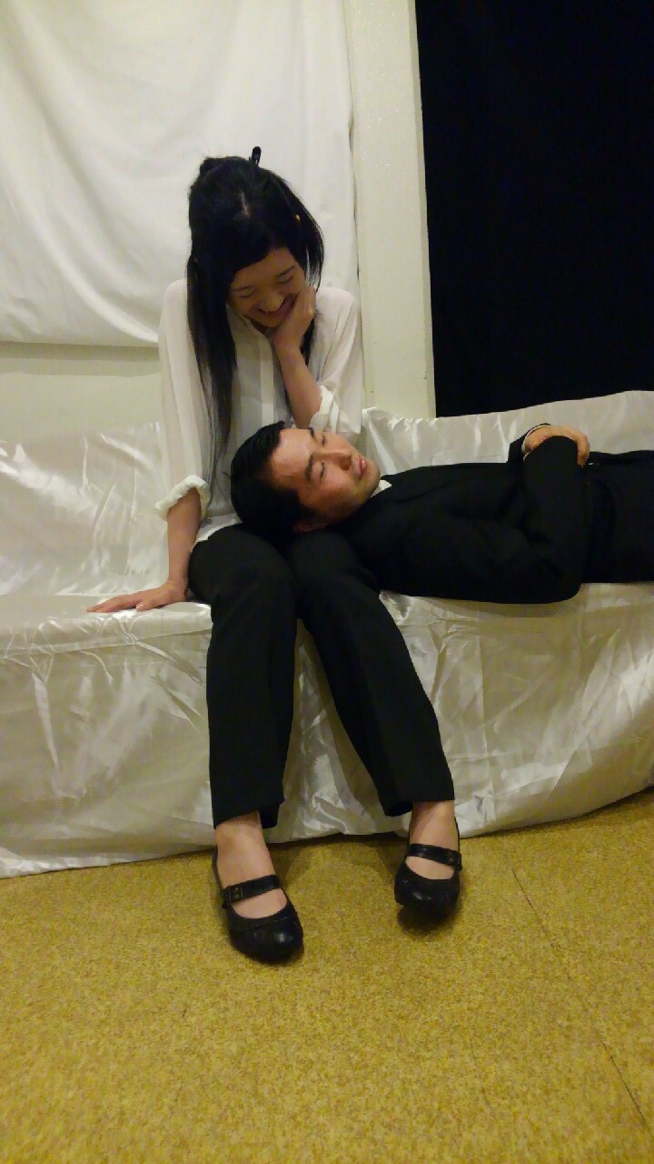 めぐる・あ・りうむ 2015/07/05 チーム☆グルービーナイト! 振り返る【めぐる・あ・りうむ】その2。☆チーム・グルービーナイト☆不思議な関係、勢い、意味がわからない…。強い想いがあって、それを受け止める人がいて。こんな繋がりも、素敵なんじゃないかな?そんな、素敵に意味がわからないグルービーチーム。参りましょう!振り返る【めぐる・あ・りうむ】!☆グルービーメンバー☆葬儀屋・・・新濱卓さん女社長・・・津金由紀さん社畜・・・・石原功助さん双子男・・・荒屋敷雅章さん双子女・・・鵜飼梨恵葬儀屋and女社長社畜and双子《役者から→役者への印象》グルービーは全員が全員と交わっているわけではないので、匿名の意味がほぼ無いですけどもあえてそのまま(笑)ちなみに、グルービーチームではない方からの声もこちらに反映しております(*´ω`*)つまりは、舞台上で深い関わりのあった人からの声といったところでしょうか。【葬儀屋】(新濱卓)第一印象→「なんかすごい悟ってそうな人だなぁ。」「知識人で冷静なひと。」今→「優しくて面白いお兄さん。」「実はど変態?むっつり?お◯すわーん。」【女社長】(津金由紀)第一印象→「女の子。」「頼りになる制作さん(遥か前の現場にて)」今→「女の子って年でも無いのか?」「暖かさがにじみ出ている女優さん。」【社畜】(石原功助)第一印象→「笑顔が素敵な優しいお兄さん。」「わぁ、かっこいい人やなー(舞台を観て)」今→「普段の笑顔と役者としての真剣な顔のギャップがかっこいいなって思います。」「普段はテキトーな会話ばかりだけど、しっかり者でやっぱり尊敬。」【双子男】(荒屋敷雅章)第一印象→「めっちゃ恐縮してるっ∑(O_O;)な…なんかしたかな…(;・∀・)(某カフェにて)」「わぁ、クマさんみたい、でも優しそうな人やなー。」今→「なんか…熱い人なんかなぁ…ぶちこんでくるなぁ…」「ネタの宝庫!器用で凄い人やなー羨ましい、尊敬。」【双子女】(鵜飼梨恵)第一印象→「立派なお人や(初舞台鑑賞時)」「すごく才能があって気遣いのできるいい子だなー。」今→「気ぃ使いやさん、色々すまんね。」「第一印象と同じですね。人としても役者としても尊敬しています。」ほほう!パッションチームと比べると、なんだか大人?なコメントが多い傾向が見られますねヾ(●´ω`●)ノこういう違いが出るのもなかなか面白いものです!《役者から→役へのメッセージ》自分で質問しといてあれですけども、なんだか難しいものですね(笑)メッセージかー…とわりと考えてしまいました。思う事はそれぞれ、ですね(*´ω`*)『新濱卓から→葬儀屋へ』笑えば良いと思うよ!(笑)『津金由紀から→女社長へ』本当よい人と巡りあいましたよねー。頑張って!そしてお幸せに(* ̄∇ ̄*)『石原功助から→社畜へ』お前に追いつけるのか?と、思ってしまうくらいにある意味大きな存在。ほっんと憧れるわwww『荒屋敷雅章から→双子男へ』ずっと待たせてごめんね。一緒に頑張って生きようね。『鵜飼梨恵から→双子女へ』それでええやで!君を真っ直ぐに見てくれる人はちゃんとおるやで( `・ω・´ )グルービーはわりとすっきりハッピーエンドだったりしましたんでね!すっきりコメントが多いのもその影響かも…?(*´ω`*)素敵に大人な落ち着きを持ちつつもお茶目な方々です!今後の活躍に期待ですよー(*´ω`*)以上!グルービーチームの皆様でした!おまけ的なものー。鵜飼、個人的に女社長の生きる姿勢がとても好きです!そして、わかりやすいようでわかりにくい簡易相関図を作ってみました。わかりにくっ!でも、その勢いが好きです。こんな写真もあるよ!あ、クマちゃんが際どい部分を隠すために仕事してくれました。すみませ_(:3」∠)_グルービーチームの皆様!お疲れ様でした!ヾ(●´ω`●)ノ