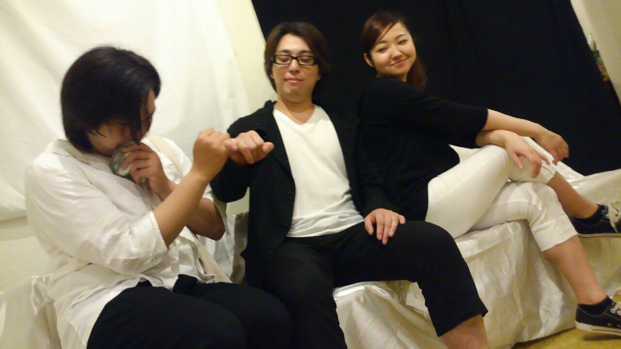 めぐる・あ・りうむ 2015/07/04 チーム☆パッションナイト! 振り返る【めぐる・あ・りうむ】その1。☆チーム・パッションナイト☆ドキドキしたり、ニヤニヤしたり、涙したり。それぞれがいろんな形で強く繋がり合い、関わり合っていたパッションナイト。本当に見所の多いチームだったと思います!今回は役者陣に、「チームメンバーの印象の変化は?」「自分の役にメッセージを送るなら?」こちらの質問にお答えいただきましたので、そちらを発表しつつの紹介です!参りましょう!振り返る【めぐる・あ・りうむ】!☆パッションメンバー☆イケメン・・高森修平さん主婦・・・・中村知世さん悪女・・・・白鳥真理さんカメラマン・田島謙太さんイケメンand主婦悪女andカメラマン《役者から→役者への印象》役者同士で第一印象と今の違いをお伺いしてみました!あえて匿名で発表しましょう(笑)同じグループの中の人同士、深く関わる中でこんな変化があったみたいですよー?(*´ω`*)【イケメン】(高森修平)第一印象→「写真とイメージ違う…静かそう。」「大人しそう。」「病弱な詩人。優しそうな方。」今→「変。面白い。」「おもしろい。」「変態。スケベ。バカ。姑息な病人。空気が読めるムードメーカー。」【主婦】(中村知世)第一印象→「真面目。」「ちっちゃい。」「おしゃれから、かけ離れた小学生。」今→「靴下の厚み。」「ちっちゃい。」「下ネタ大好きなどんくさい小学生。面倒見の良い隣人さん。」【悪女】(白鳥真理)第一印象→「クールビューティー。」「大人。しっかりしてそう。」「ツンツン静か。真面目。」今→「クールビューティー。」「女子力高い。男前。かわいい。」「意地悪&意地っ張り&負けず嫌い&一握りの優しさ。」【カメラマン】(田島謙太)第一印象→「真面目。」「……忘れた…(笑)たぶん、いい人そう。」「怖そう。」今→「喋らないといけない人。」「さわがしい。人気者。ムードメーカー。」「うるさい(笑)」…なかなかに酷い言われようの方もいらっしゃいますが、それほどお互いを知ることができたということなのでしょうか…笑《役者から→役へのメッセージ》今回は、自分が演じた役に向けてのメッセージを頂戴しました!自分自身が演じたからこそ、伝えたい事があったりするかもしれませんよね(*´ω`*)『中村知世から→主婦へ』大丈夫。あなたを愛してくれる人はきっといるわ。自分を信じてまわりを信じて前を向いて進んでください♪『白鳥真理から→悪女へ』器用なんだか不器用なんだか…もっと気楽に生きろよ。『田島謙太から→カメラマンへ』自分を信じてMY WAYを突き進め!良いことあると思うよ!『高森修平から→イケメンへ』がんばれ、犬!…犬(笑)イケメンとはなんだったのか…。どうにもSAY企画はイケメンをイケメンとしない傾向がありますね(笑)個性豊かでノリの良い方々ですね!今後の活躍にも期待が高まりますヾ(●´ω`●)ノ以上!パッションチームの皆様でした!カメラマン繋がりで写真風にしてみたものをぺたり…笑パッションチーム、お疲れ様でした!次回は、グルービーチーム!!