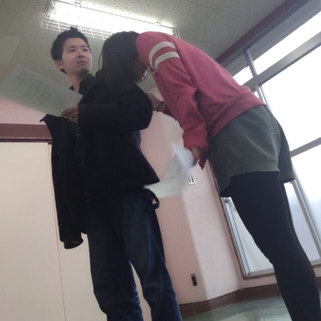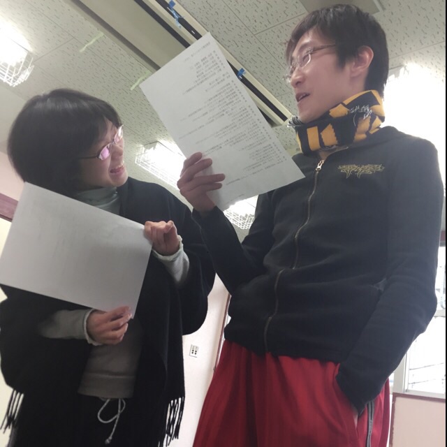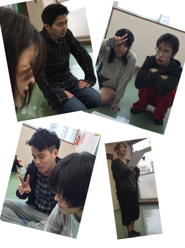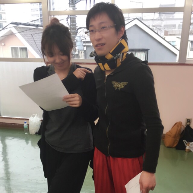 めぐる・あ・りうむ 2015/04/19 とある稽古の一コマ。 どうも!SAY企画ブログ担当鵜飼です。お久しぶりですね!…いや、サボってませんよ(真顔)今回はとある稽古風景をば。脱力系男子2人を見つけたので激写。仲良しか!ノリの良さが尋常じゃない石原さんと、腰痛い系男子の鈴木さんでした。全体の雰囲気や流れをつかむ作業中。これは空気感が大切ですね。表情が生きてきてます。いつもふわふわしているゆいぽんこと池尾さんも、稽古になると一転。頼りになる役者です。実はSAY企画の裏ボスなのではという疑惑も………おっと誰か来たようだ。段々と形になっていくこの物語達が、どのように皆様に届くのか。稽古が終わる度に楽しみになってきますね(*´ω`*)今後は役者紹介も織り交ぜてお送りしていきたいと思いますよー(。・д´・。) では、また次回!鵜飼でした(*´ω`*) PR